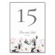 Delicate bed of white roses at the bottom of this elegant wedding table number card. Customisable grey typography for table number, newlyweds names and event date.