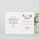 Unique and Elegant Pink White Roses Bouquet design. It features gorgeous watercolor antlers with white, pink roses bouquet, on the bottom a bouquet with the same roses, all on a white background. On the back burgundy background, arrows with hearts, flowers and bride and groom initials. Add your information. For matching items, please, visit my White Roses Antlers Collection.