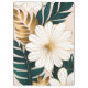 A large, line drawing of a white flower, outlined in gold, with green and gold fern-like leaves, and a warm peach background makes a beautiful cover on this notebook.