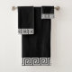 Elegant White Geometric Pattern Frame on Black Bath Towel Set
