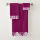 Elegant white Greek frame Pattern on wine maroon Towels.