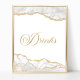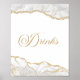 Elegant White Gold Agate Party Drinks Sign