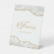 Elegant White Gold Agate Party Favors Pedestal Sign