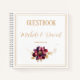 Elegant White Gold Burgundy "Leave a greeting" Guestbook. Floral design in Golden and Burgundy on a white cover. The book title, couples names and wedding date are in golden as in the floral and a frame. The back cover have the text "Always Us Forever" with the couples initials. All the text is customisable.