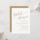 Elegant and simple bridal shower invitation template with modern and sophisticated handwritten style font in faux gold on a white background. Perfect for a chic bridal shower, this customisable invitation is ideal for a sophisticated celebration. Enhance your bridal shower with this stylish design, featuring a modern font and faux gold accents. Create a unique and memorable invitation for your bridal shower with this elegant template.