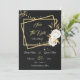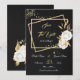 elegant romantic white flowers and gold leaves on gold rectangles black save the date invitation