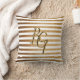 Elegant White Gold Glitter Stripe Monogram Cushion