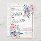 Simple handwritten script calligraphy with elegant white, gold, pink, and navy blue floral Wedding invitations. This stylish modern glam invitation is perfect for any classy and sophisticated chic girl. This design is ideal for a trendy and elegant party event. Customise this design with your own message and personalised information. All designs are printed