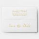 Create your own custom, personalised, simple, elegant, stylish, beautiful faux gold script / typography, smooth, classic, matte, wedding / engagement save the date invitations / greeting cards envelopes. Simply enter the couple's names (bride & groom / wife & husband) / your name / family name / company name, and address. Perfect for both, home and business, personal and official mailings. Elegant return address envelopes for use on wedding, save the date, bridal shower, birthday, marriage anniversary, graduation, baby shower, christmas, holidays, or any other special occasion.