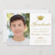 Elegant White Gold Script Cap Photo Graduation Announcement