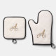 Elegant White Gold Script Monogram Oven Mitt & Pot Holder Set