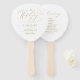 These elegant wedding program hand fans feature a faux gold typography design on a white background. Personalise with the bride and groom names and wedding date on the front and the details of your ceremony on the back. Designed by Susan Coffey.