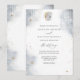 Delight your guests with this elegant watercolor celestial wedding invitation with exquisite watercolor sky with stars and moon and dainty little hanging string lights in a beautiful blend of gold, silver, white and a touch of blue hues. Delicate watercolor moon monogram on top with couples initials. Stars and moon detail in faux gold foil. Modern hand written calligraphy elements. Ability to change "together with their parents" introduction to "together with their families", "together with great joy" or "together with great pleasure". Back with watercolor celestial background with string lights. Part of our "Gold White and Silver Celestial Stars and Moon" collection with a variety of coordinating products available. Visit the entire collection at: https://www.zazzle.com/collections/gold_white_and_silver_celestial_stars_and_moon-119446192561160871