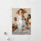 Custom gold photo Christmas card featuring an elegant script font title and a photo on the front and a gold starry patterned background at the back. More colour options available.