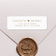 Elegant white return address labels for your wedding invitations, save the dates, engagement announcements, thank you cards and other wedding correspondence with your names in classic gold serif typography joined together by a heart.