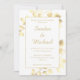 Elegant classy white wedding invitations with golden beige leaves for a chic and classy wedding.