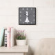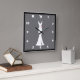 A square clock with a classy gray background. Designed with an elegant white gown hanging down from a hanger. Simple minimalist design.