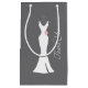 Thank You gift bag made with a classy grey background. A graphic illustration of an elegant white gown hanging on a hanger. Simple minimalist design.