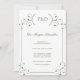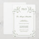 A PhD graduation party invitation with an elegant design, a green frame, white background, and green lettering. Simply add your information, add this invitation to your cart, and celebrate this major accomplishment.
