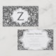 Elegant white, grey floral pattern monogram business card