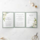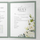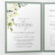 Elegant White Grey Green Meals Wedding Tri-Fold Invitation