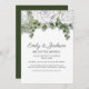 Elegant White Hand Drawn Flowers Green Wedding Invitation