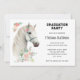 Graduation invitation with a magical illustration of a beautiful white horse head. Surrounded by cute little pink flowers. Boho elegant vibe for horse lovers.
