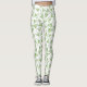 Botanical white leggings with green ginkgo leaf print – minimalist nature-inspired activewear for everyday elegance