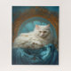 The primary colour palette includes soft pastel hues, with the cat's fur showcasing a pristine white that symbolises purity and grace. The silk fabric background further enhances the dreamlike quality, adding a touch of luxury to the overall aesthetic.