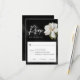 Elegant RSVP response card designed with an illustrated White Magnolia on a black background. Matching items in our store Cava Party Design