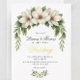 Celebrate your special day with this timeless and refined wedding invitation featuring delicate white magnolia flowers framed by lush pine greenery. The watercolor botanical artwork brings a soft, romantic touch while maintaining an elegant, minimalist feel. Fully customisable with the couple’s names, wedding date, venue, and details. Ideal for winter weddings, nature-inspired themes, or Southern garden ceremonies. Printed on high-quality paper and easy to personalise with your favourite fonts and colours.