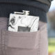 The flask itself is fine. It’s a cheap flask, obviously bought in bulk, however am prepared to overlook that. Given that it is a personalized item, I would have liked to have seen gift boxing instead of the generic packaging. Terrible printing, and/or quality. It’s a cheap, tacky vinyl. It is not cut straight and is also applied in a way that it is overhanging the bottom, causing the glue to catch on items and it will eventually roll and tear, damaging the wrap.