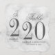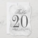 features title "Table" in grey elegant script font style with large table number and wedding details in grey serif font style on white marble background.