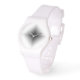 Featuring a sleek design, this unisex timepiece offers a clean 3D effect white and black dial with simple, minimalist hands and a comfortable white strap.