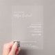 Acrylic Invitation, Size: 12.7 cm x 17.8 cm, Style: Clear Acrylic, CornerStyle: Rectangle, Print: Digital, Thickness: Standard (0.381 mm), Envelopes: None