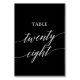 Elegant White on Black Calligraphy Table 28 Number