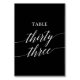This elegant white on black table 33 table number is perfect for a simple wedding. The neutral design features a minimalist card decorated with romantic and whimsical typography. The card prints on the front and back (double-sided). Other table numbers in the collection are sold separately.