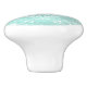 White damask filigree and floral pattern on softly shaded pastel teal background.