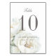 Complete your wedding suite with this elegant white peonies table number card featuring soft ivory white florals and delicate sage greenery. Designed to coordinate seamlessly with the invitation, this table number card adds refined garden-inspired charm to your wedding reception or celebration. Personalize the text template with the bride and groom's names and wedding date. Create a separate card for each table by editing the table number, then add to cart; edit the next table number and add to cart; do this for each table until you have all the numbers needed, then checkout to complete your order.