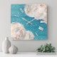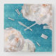 Elegant White Peony Turquoise Damask Floral Square Wall Clock
