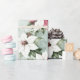 The magical beauty of elegant poinsettias is part of the specialness of the Christmas season. This lovely pattern includes elegant white and pink poinsettias in a vintage watercolor patterns intermixed with greenery and red berries with a coordinating light green background.