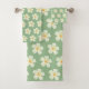Elegant White Plumeria Flowers on Green Bath Towel Set