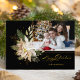 Elegant White Poinsettias w/Gold Greenery Photo Holiday Card