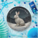 An Elegant white rabbit in a Christmas snowy woodland scene.