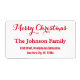 Custom, personalised, elegant white, luxe christmas red typography script, holiday season inkjet printer compatible, easily writeable, matte finish, shipping name return address label. Simply enter the family name / bride & groom's / wife & husband's names, and address, to customise.