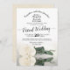 This beautiful invitation is designed for couples who have decided to take their weddings online. It features a gorgeous design with lacy script calligraphy a single long-stemmed ivory, white, or cream coloured rose reflecting in a pool of water. Wonderful way to invite your friends and family to share in your special day, even if circumstances prevent a physical gathering.