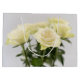 A photograph of a set of white rose flowers where one of the roses is in focus. This timeless design is ideal for birthdays, weddings and other special events.