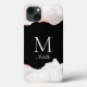 Elegant white rose gold agate monogram iPhone 13 case.