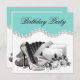 Elegant white rose, pearls & high heel shoes teal blue birthday party invitations. This elegant design can be customised on the front and back for your party or event. This beautiful teal blue, pearls, gift, white rose and high heel shoes works well for a girl or womans birthday party invitation, wedding, bridal shower, retirement party, corporate event, anniversary party, and any other special occasion. Add your details to the front and/or back by simply choosing the "Customise it!" button to begin adding your event details, font style, font size & colour, and wording. Please note - all of the invitation designs you will find on Zazzle are printed graphics with no actual jewels, bows, raised, embossed, or added parts or pieces.