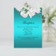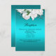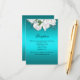 A gorgeous, very luxe-looking aqua wedding reception enclosure card which features all the details you need your wedding guests to know about your reception. The details can be easily customised to suit your own information. The design itself features a beautiful white bridal bouquet at the top of the front of the card, with a smaller version on the back. Add your wedding website details on there too, if desired.